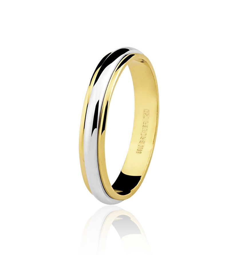 Aliança Trabalhada Ouro Amarelo 18K com detalhe Ouro Branco