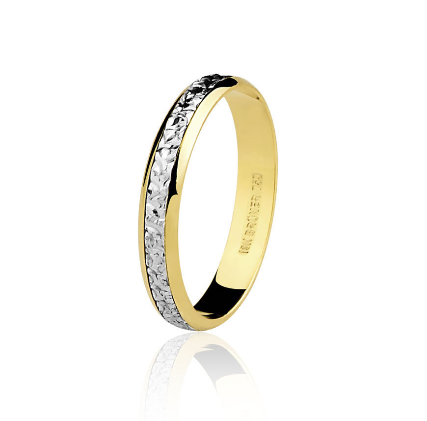 Aliança trabalhada ouro amarelo com detalhe ouro branco 18k