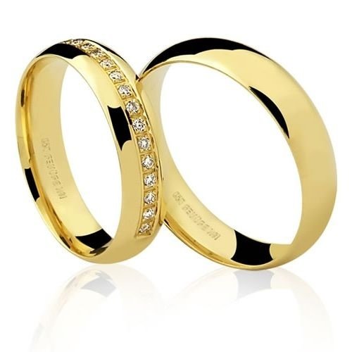 Par de Alianças anatômicas ouro amarelo 18K com 18 Diamantes com 16pts