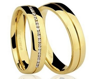 / Par de Alianças anatômicas ouro amarelo 18K com 20 Diamantes com 14pts