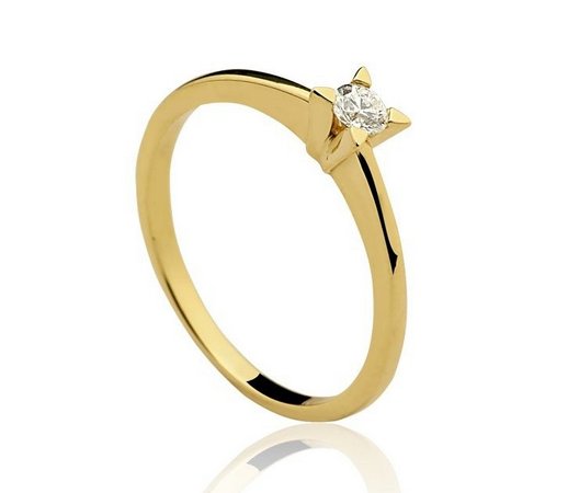Anel Solitário ouro amarelo 18K 1 Diamante de 15pts