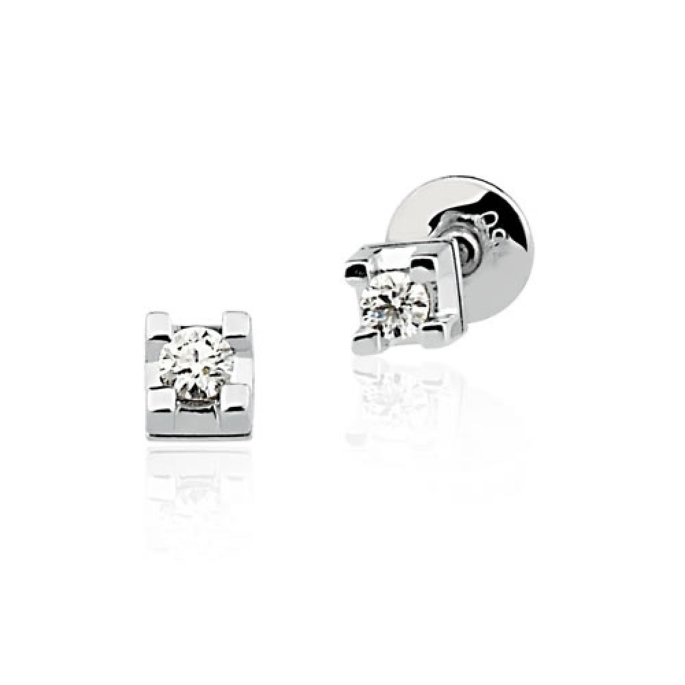 / Brincos de Ouro Branco Cartier Solitário com Diamante de 5 pontos