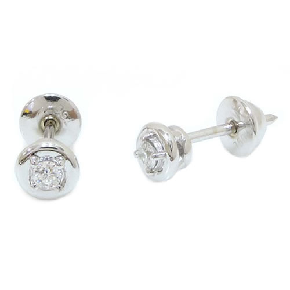 Brincos Solitário de Ouro Branco com Diamantes de 5 pontos cada
