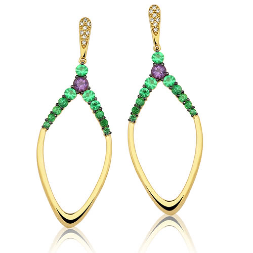 Brincos de Ouro Feminino com Esmeralda e Ametista