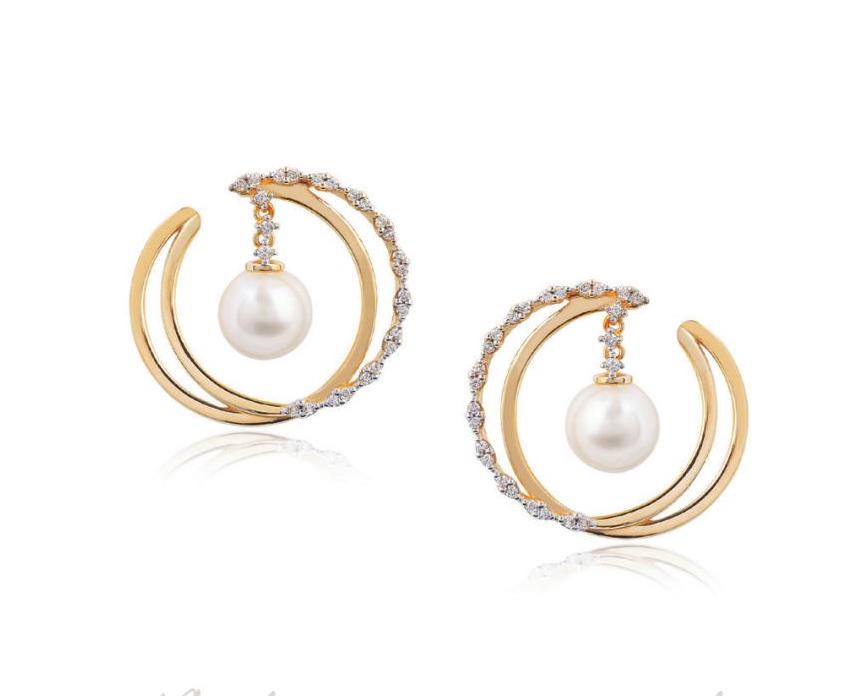 Brincos ouro amarelo 18k 2 aros, diamantes e pérolas