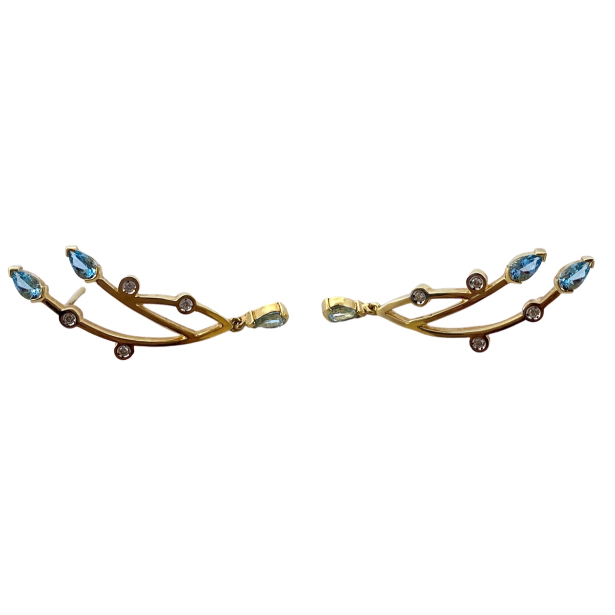 Par de brincos ouro 18k com topázios azuis e diamantes
