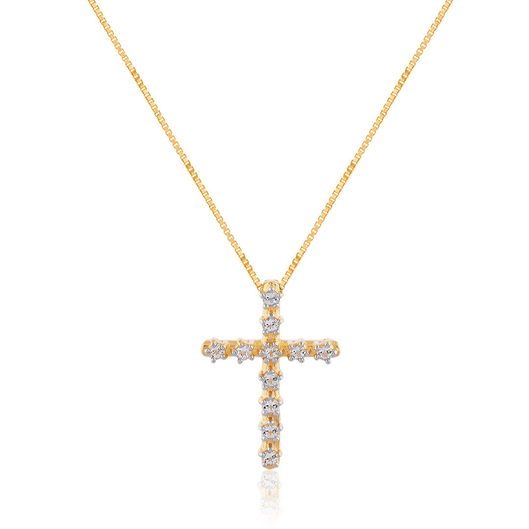 Colar cruz ouro 18k com diamantes