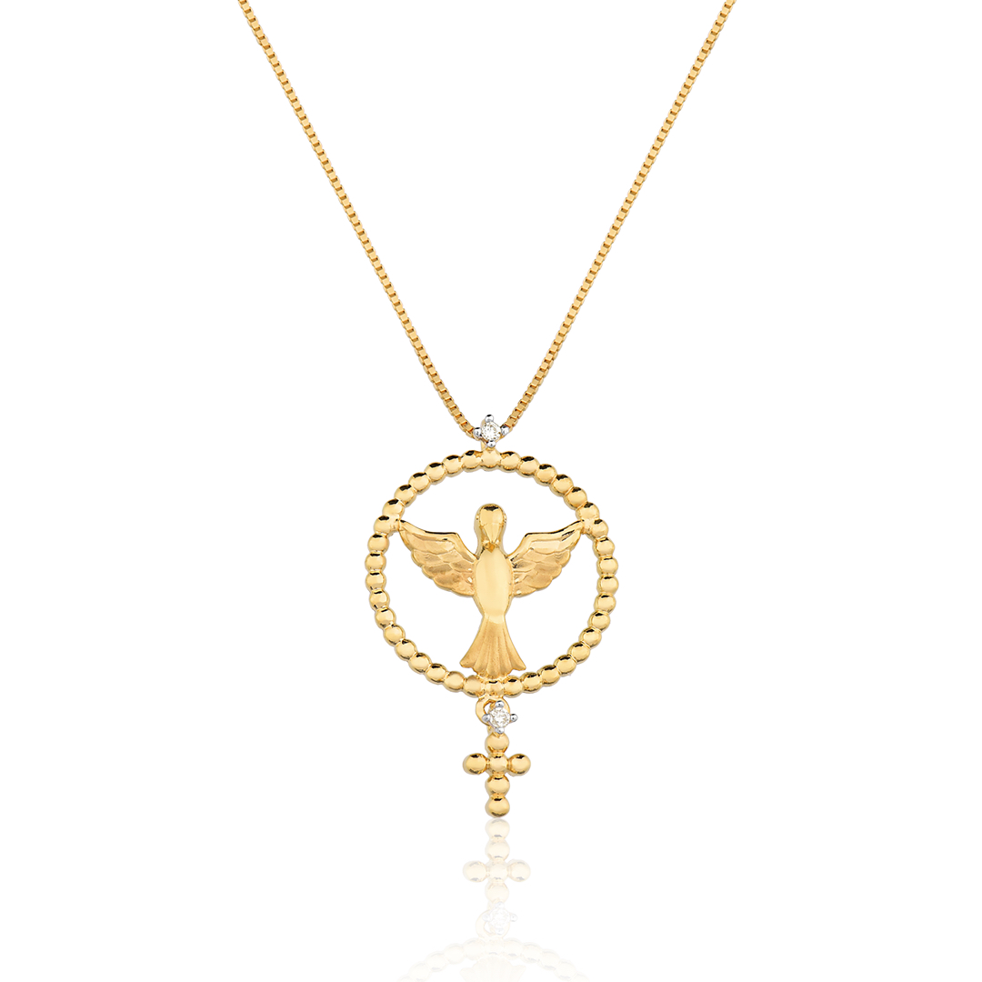 Colar Divino Espírito Santo ouro 18k com diamantes
