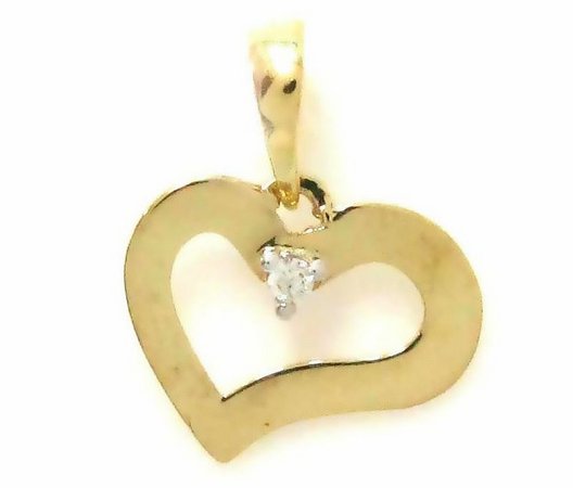 Pendente Coração ouro amarelo 18K com 1 Diamante de 1pt
